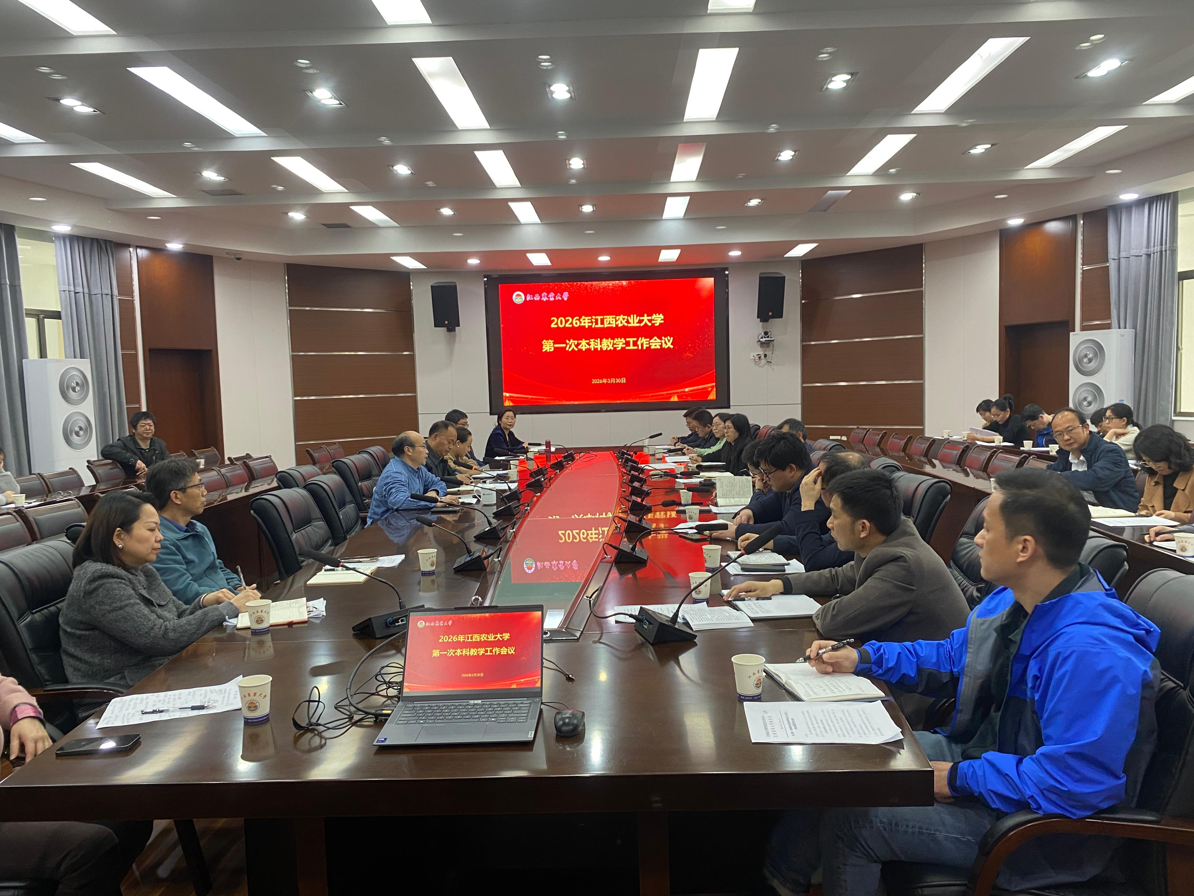 3月30日下午,学校2026年第一次本科教学工作会议在办公楼二楼圆厅会议室召开。副校长刘木华出席会议并讲话,教务处负责人主持会议,各教学单位分管教学工作领导、本科教学秘书,教务处、教学质量监督与评估中心、创新创业学院负责人及相关工作人员参加会议。