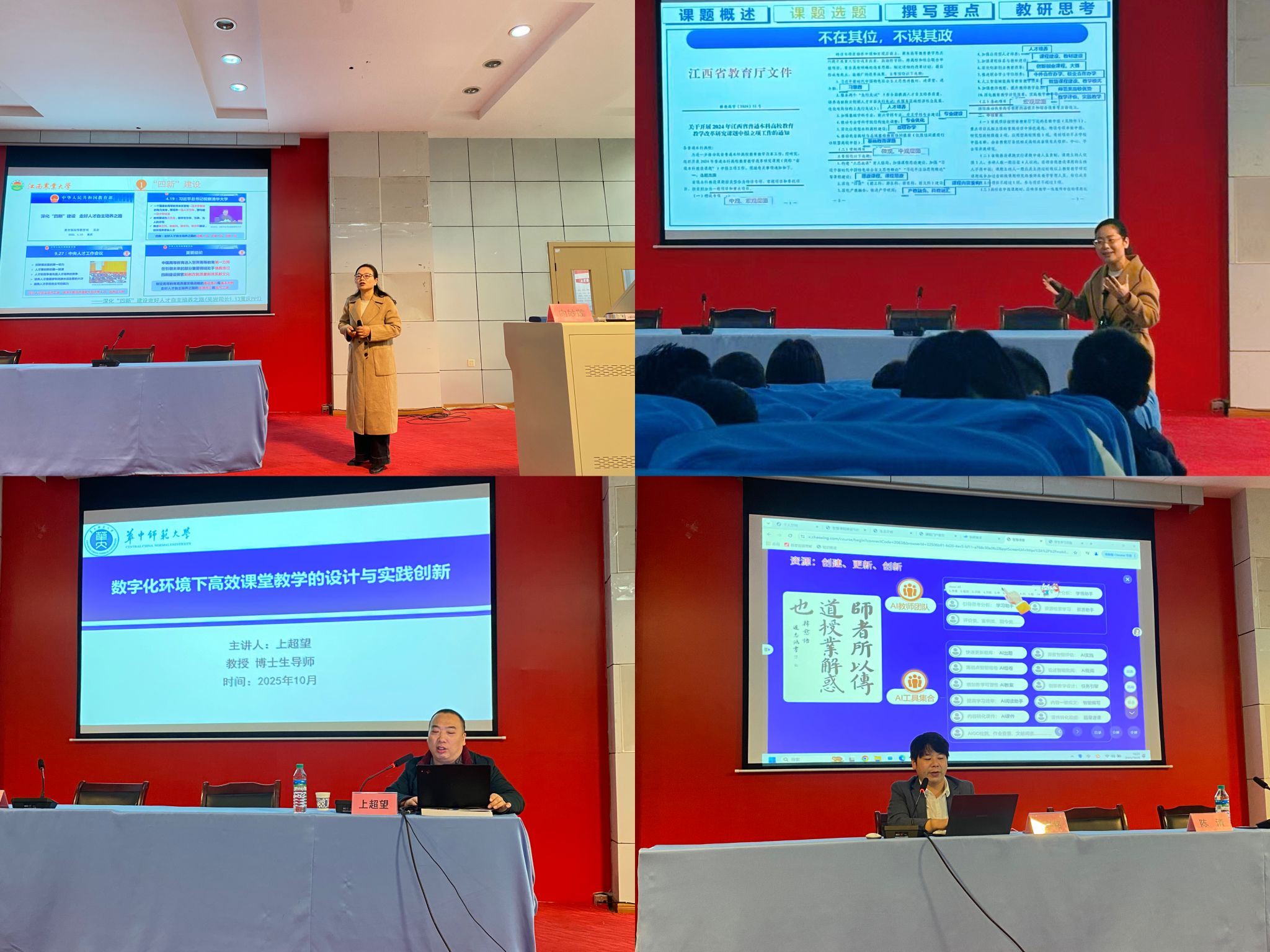 本次培训会以“夯实教学基础,赋能智慧教学”为主题,为确保培训实效,学校邀请了校内外四位教学领域的资深专家,围绕青年教师教学实践中的核心痛点与前沿需求展开专题分享。我校向妙莲教授以《积微成著,厚积薄发:教学资源建设赋能课程质量飞跃的方法与路径》为题,从系统化资源积累角度,为青年教师夯实教学基础提供了可操作的实践路径;我校龚霞教授针对非教育学背景教师的困惑,带来《非教育学背景的教改课题选题与撰写要点》报告,拆解课题申报的核心逻辑与实用技巧;华中师范大学上超望教授讲授了题为《数字化环境下高效课堂教学的设计与实践创新》的报告,系统梳理了数字化课堂的设计逻辑;超星集团曹冬铭总监以《AI赋能教学全流程,助力课程升级》为题,结合大量实战案例,分享了AI技术在教学各环节的应用方法。