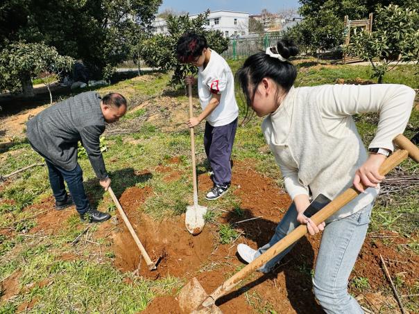 在第48个植树节来临之际,春回大地、万物萌发之时,江西农业大学机关党委第七支部有了新动作——把主题党日活动“搬”到了耕读创意实践基地。支部党员携手联系班级的学生,开展了一场“植绿护绿践初心,共建美丽新校园”的义务植树活动,将党性锤炼、劳动教育与生态文明的种子一同播撒进沃土。