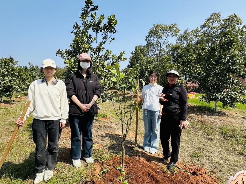 此次活动可不只是简单植树,而是一堂精心打造的“沉浸式”耕读教育实践课。选择兼具生态、经济与景观价值的柚子树,既丰富了实践基地的物种多样性,也体现了对“十年树木,百年树人”的深刻认知。劳作间隙,老师们就地授课,将课堂理论延伸到田间,引导学生思考现代农业与生态保护的协调发展,探讨从“植绿”到“护绿”的责任担当。学生们在劳作中磨炼意志、增进情谊,心中也悄然种下守护绿水青山的坚定信念。