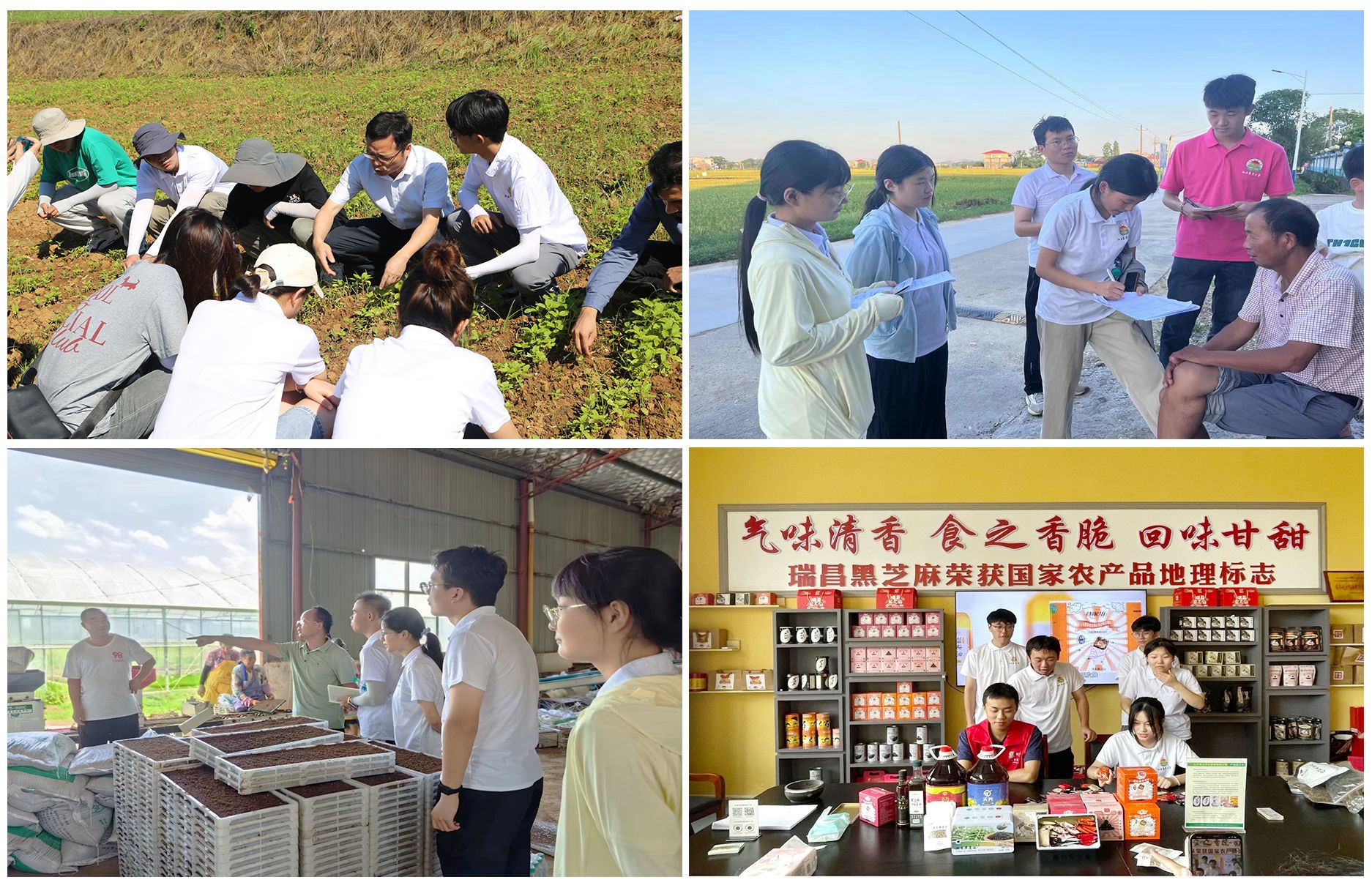 走进科技小院,历练兴农本领。在上高县水稻科技小院,双季稻“两优一增”技术推广营队在老师和研究生学长的带领下与泗溪镇农技站联合开展了水稻栽培新技术推广活动。同学们先后走访了4个自然村,实地调研当地水稻的种植规模、种植方式以及在栽培技术上遇到问题和困惑,用通俗易懂的语言向农户介绍双季稻“两优一增”丰产高效生产技术的特点和优势。在奉新县猕猴桃科技小院,为你着“猕”创新创业营队的同学们学习和体验了猕猴桃夏季修剪、疏枝、绑蔓和除草机驾驶技术,指导老师和新西兰农业科技有限公司的相关负责人为同学们介绍了猕猴桃产业发展、新品种选育以及产学研融合发展的情况,并对营队的创新创业项目如何适应产业需求、提升项目科技含量、巩固项目落地成果提出了意见和建议。在瑞昌黑芝麻科技小院,同学们参观了九江天兴农业发展有限公司生产车间,走进了企业线上销售直播间,与企业负责人探讨了黑芝麻的栽培种植、产品加工和营销推广等实操过程。在科技小院负责人的带领下,同学们还参加了黑芝麻田间幼苗护理劳动,深入农户家中开展了黑芝麻病虫害防治科普宣传活动。